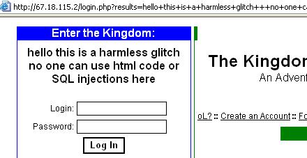 now it just screwed up. i was on my way to exploiting, i will admit at this point i was hoping to do something to the site (note: that i am not a malicious person, so i hoped it would not do something bad, just something to wake people up alittle bit.).
