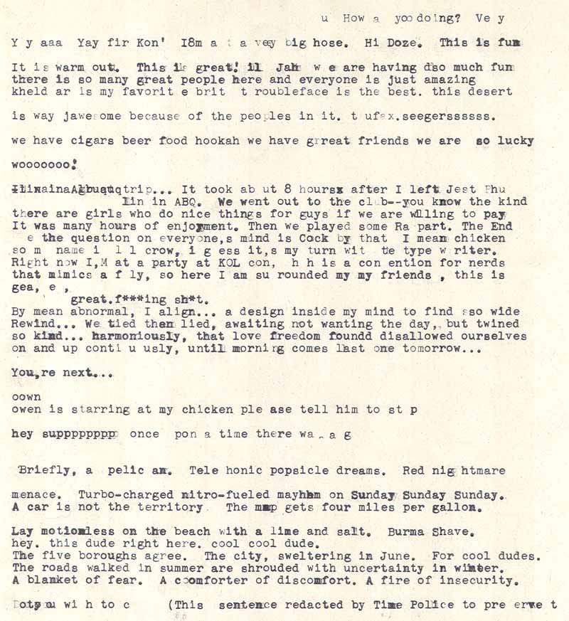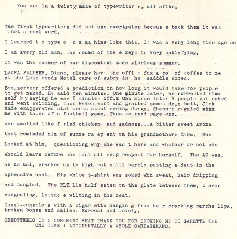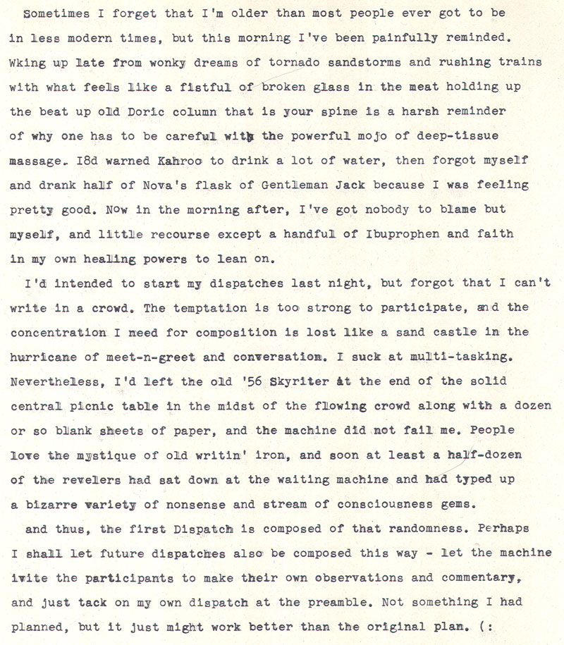 Date: September 15, 2010 Location: Undisclosed Location, private clan party Weapon of Choice: 1956 Smith-Corona Skyriter